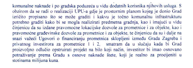 "S obzirom na to da su bile izdane lokacijske dozvole od strane grada te je i Gradska skupština prodala zemljište privatnom investitoru, nažalost nije bilo zapreka da investitor realizira projekt. U suprotnom Grad bi imao veliku financijsku štetu od nekoliko desetaka milijuna eura", stoji u odgovoru Grada Zagreba kojeg smo dobili u odgovoru na naš upit.